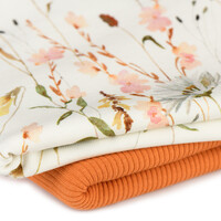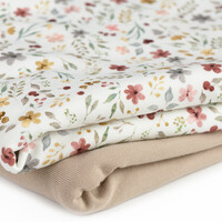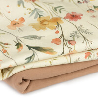 Ontdek de voordelen van onze "Bloem Collage Ecru" Jersey Katoen: